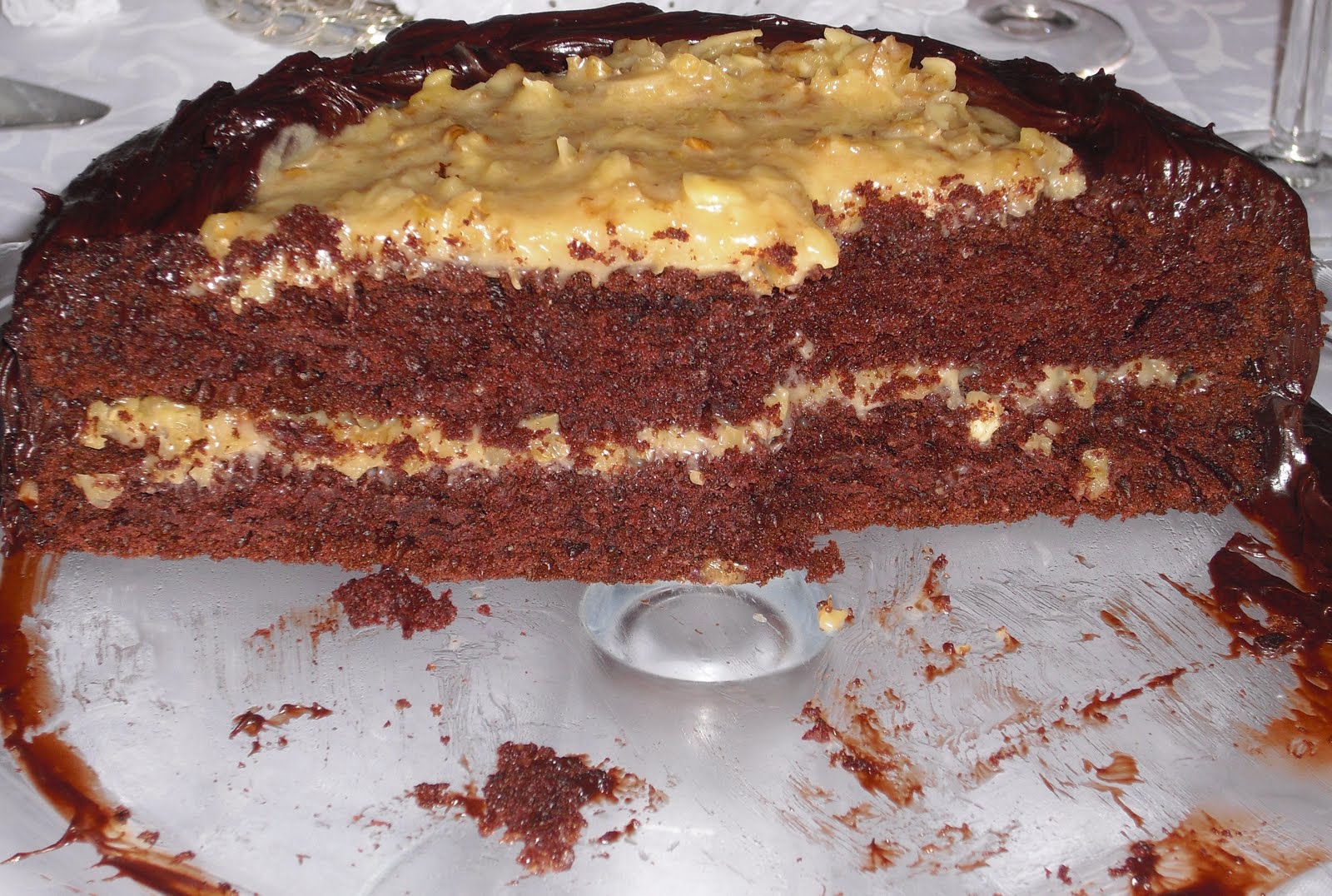Delicioso Bolo de Chocolate com Recheio de Caramelo com Nozes e Amêndoas